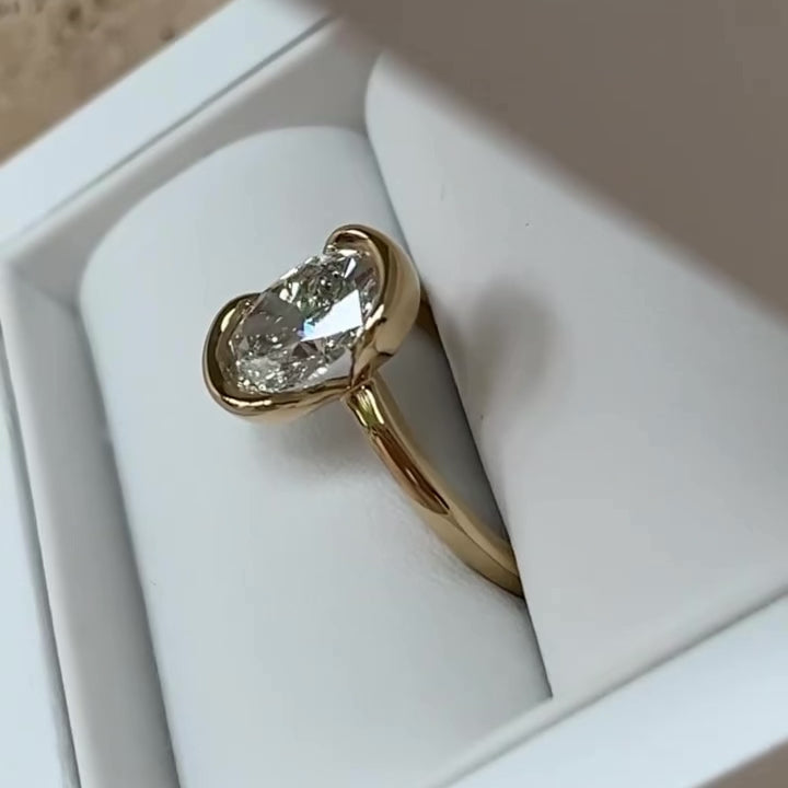 1.75ct oval cut diamond engagement ring set in an 18ct yellow gold half bezel setting.